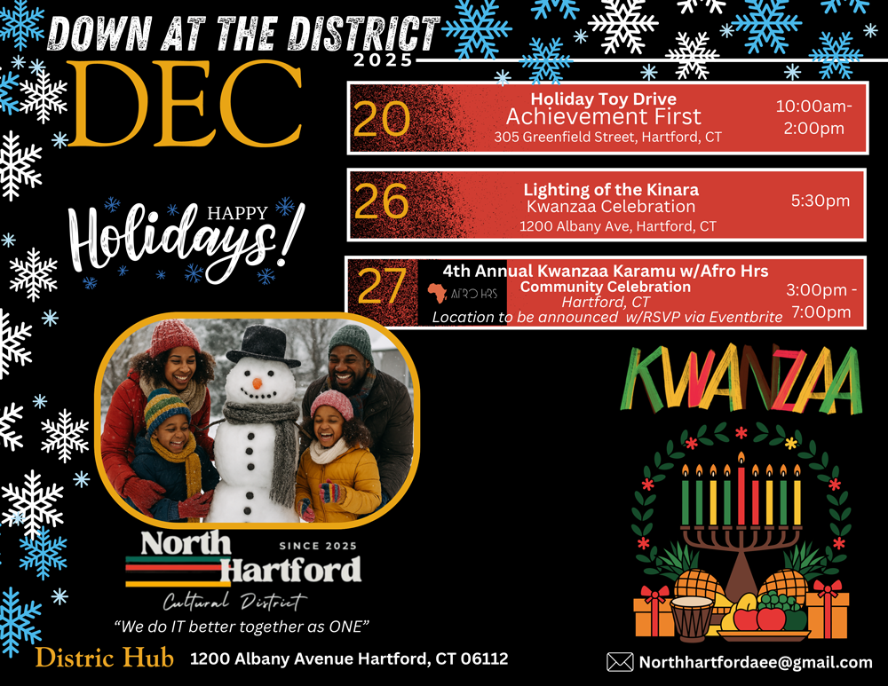 We are building Hartford’s first state-designated Cultural District, and you’re invited to help shape its foundation. Join a historic movement celebrating Black creative brilliance, community resilience, and cultural heritage right here in the heart of North Hartford.